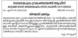 Tender for Advertisement of Darghas Balaramapuram Gram Panchayat is inviting competitive tender for the post of Assistant Engineer Transport Officer to be implemented under the 2022-23 Annual Plan
