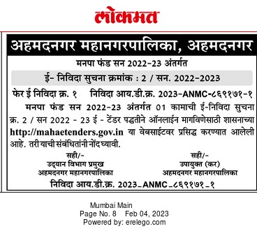 Tender for Ahmednagar Municipal Corporation of works in  Ahmednagar Under Municipal Fund Year 2022-23