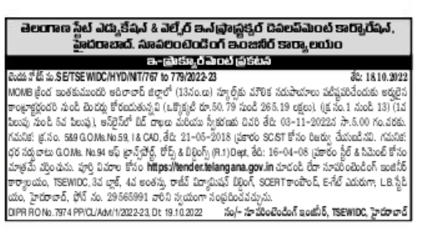 Tender for all eligible contractors for strengthening of school infrastructure in Adilabad District