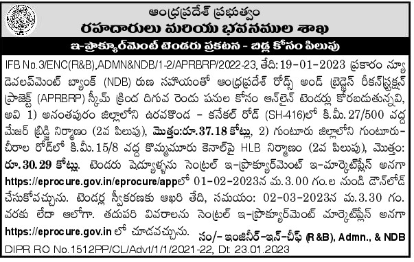 DIPR RO No. 1512PP/CL/Advt/1/1/2021-22, Dt: 23.01.2023