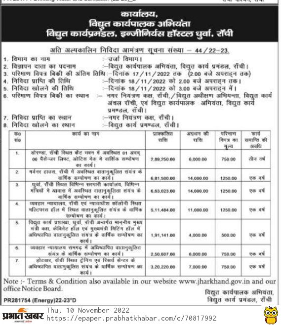 Tender for Annual maintenance of air-conditioned plant located at Governor House, Ranchi