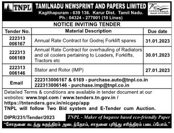 Tender for Annual Rate Contract for Godrej Forklift spares