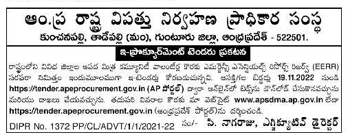 Tender for Apada Mitra Community Volunteers of various districts of the State.
