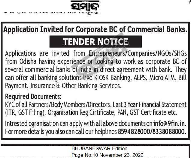 Intrested ogranisation can apply with all above documents on info@9fin.in.