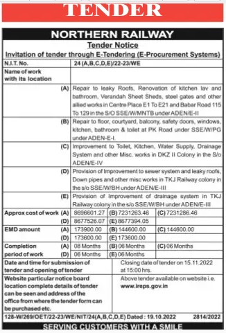 Tender for Augmentation/Upgradation of old corroded P/F shelter, benches in the section of ADEN/SMOL