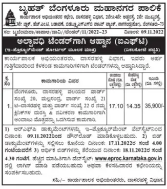 Tender for Bangalore, Dasarahalli: Ward No: 20, Mallasandra Ward No. 21 1./T-Dasarahalli and Ward No. 22 of our clinics providing estimated amount for repair & renovation work,