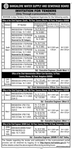 BANGALORE WATER SUPPLY AND SEWERAGE BOARD BWSSBEEW-1/PB/1740/2022-23 Date: 18.11.2022