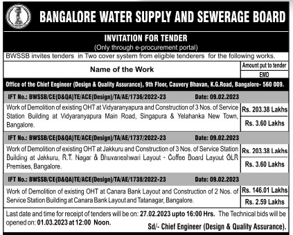IFT No.: BWSSB/CE(D&QA)TE/ACE(Design)/TA/AE/1736/2022-23