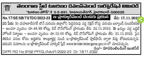 Beautification of Nikelen Road and Island at Peddacheruvu, Mahbubnagar Town and District – Estimated Cost: Rs.48.99 Crores,