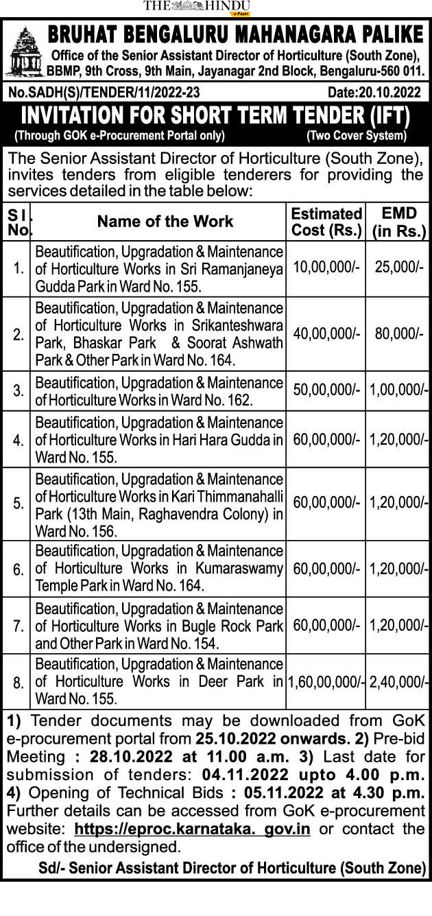 Tender for Beautification, Upgradation & Maintenance of Horticulture Works in Ward No. 162.