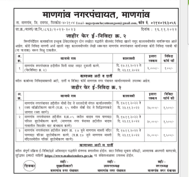 Tender for beautify Bhadav village Panwatha area in P.No.05 within Mangaon Nagar Panchayat limits. (Construction of Visarjan Ghat in Bhadav village in Mangaon Nagar Panchayat limits)
