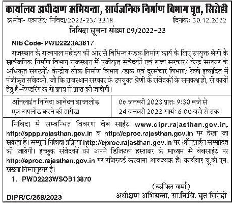 Tender for behalf of the Governor of Rajasthan, the appropriate categories of registered contractors in the Public Works Department, Rajasthan and the authorized organizations of the State Government, the Central Government, the Central Public Works Department, the Postal and Telecommunication Department, Railway