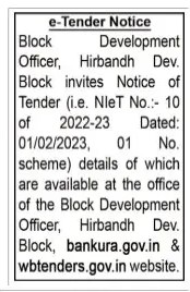 Tender for Block Development e-Tender Notice Officer, Hirbandh Dev.