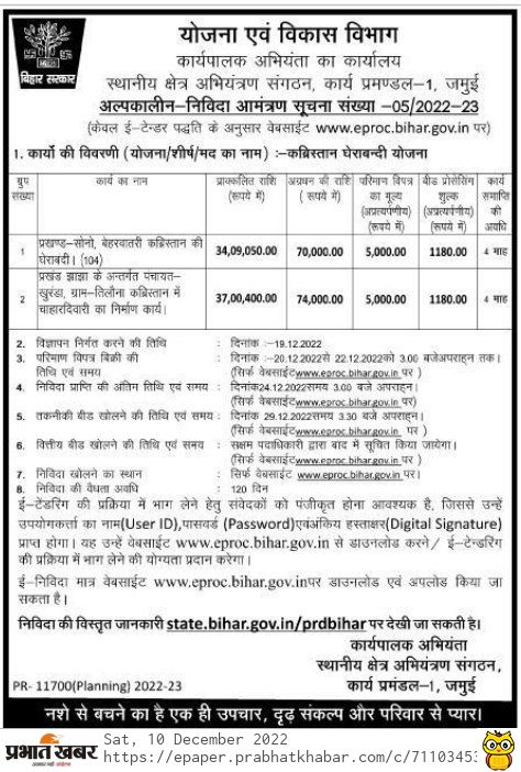Tender for Block-Sono, siege of Beharwatari cemetery. (104)