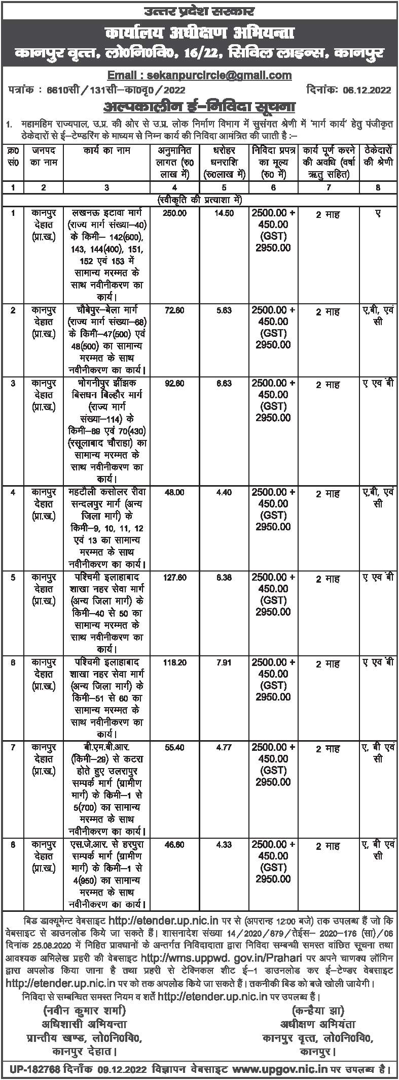 Tender for BMBR (Km-28) to Ularapur Link Road (Rural Road) via Katra, renovation work along with general repair of Km-1 to 5 (700).
