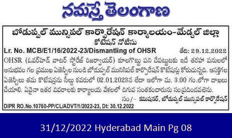 Tender for Bodupal Municipal Corporation is seeking quotations from reputed agencies having experience in similar works for undertaking demolition work of OHSR (Overhead Water Storage Reservoir).