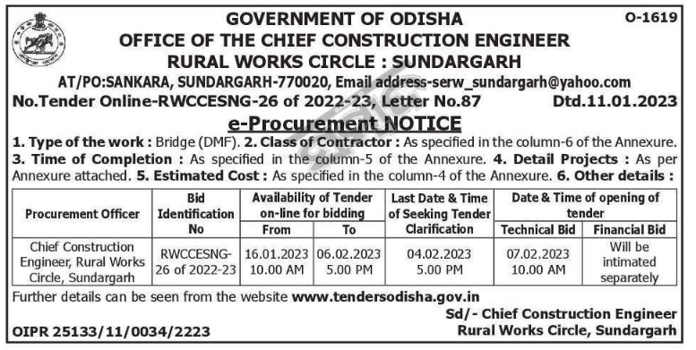 Tender for : Bridge (DMF). 2. Class of Contractor: As specified in the column-6 of the Annexure.