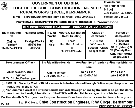 Tender for Bridge Works (BSY) for 80-2022-23/BPR 2022-23