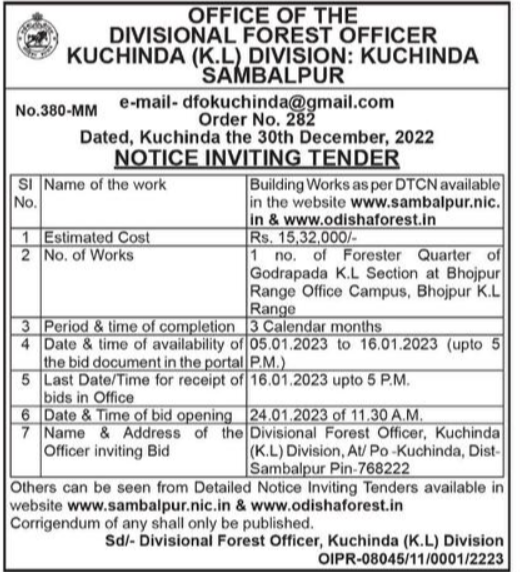 Tender for Building Works as per DTCN available in the website www.sambalpur.nic. in & www.odishaforest.in