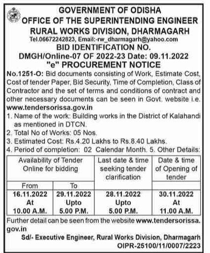 Tender for Building works in the District of Kalahandi
