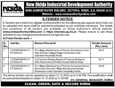 Tender for C/o Footover Bridge (Repair of Footover Bridge on DSC Road infront of Police Chowki NSEZ) Noida