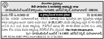 Tender for CADD, Irrigation Circle, Mahbubabad, DPR RO No. 12867.PPICL/A1.2022-28 Dt 27.02.2023.