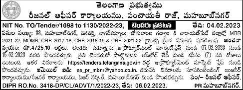 Tender for Call for works under CAR 2017-18, CHR 2018-19 & CAR 2021-22 grants.
