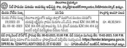 Tender for Canal Embankment at KM 164.385 to KM 164,435, C.C. About repairing lining and under tunnel of KM 164.434 No.