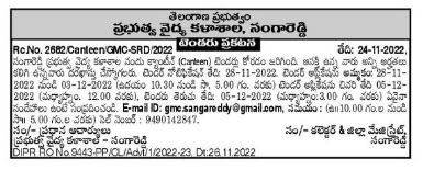 Tender for Canteen (carteen) tenders have been called for in Sangareddy Government Medical College.