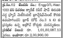Tender for Carriage Repair Shop Tirupati Repairs to existing approach road to disused track (Road No.3 & 4) for transshipment of scrap material