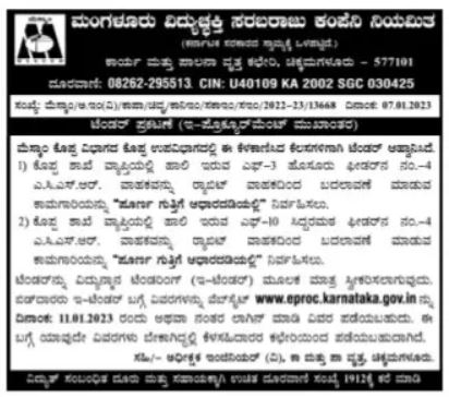 Mescom has invited tenders for the following works at Koppa sub-division of Koppa