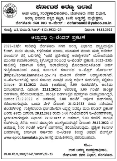 Tender for carrying out advance works under Afforestation in other areas scheme on roadsides of Puram Zone, Kaggalipura Zone, Yalahanka