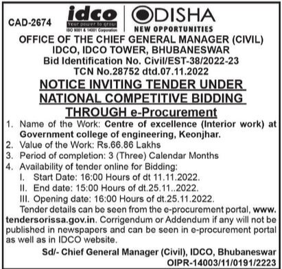 Tender for Centre of excellence (Interior work) at Government college of engineering