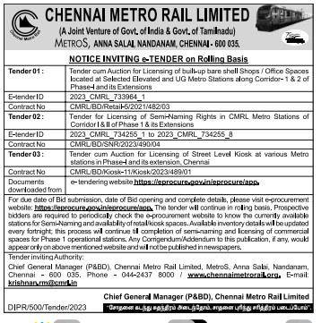 Tender cum Auction for Licensing of Street Level Kiosk at various Metro