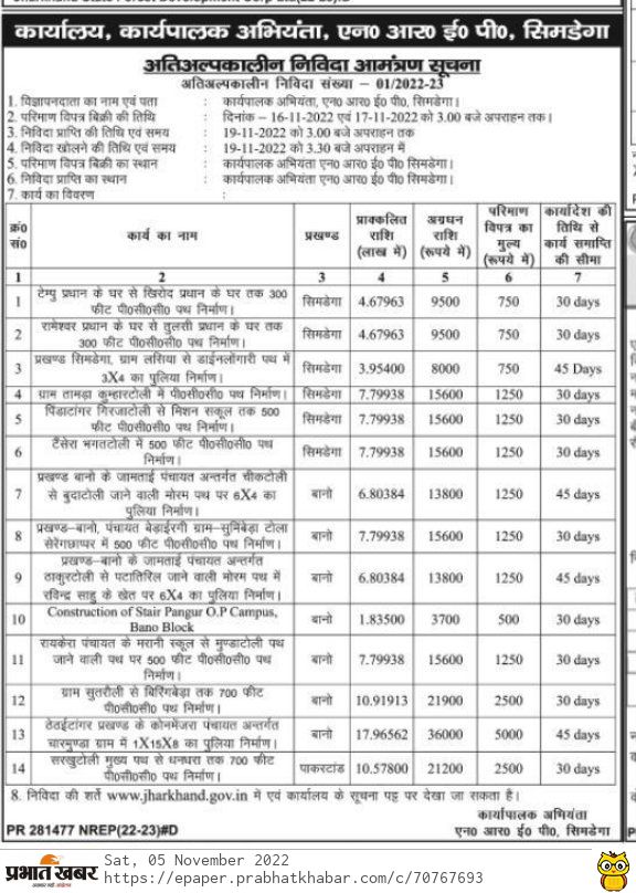 Tender for Chiktoli under Jamtai Panchayat of Block Bano Construction of 6X4 culvert on Noram path going from Budatoli