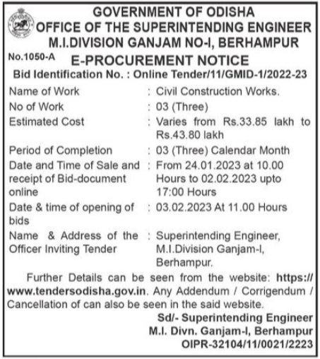 Tender for Civil Construction Works.