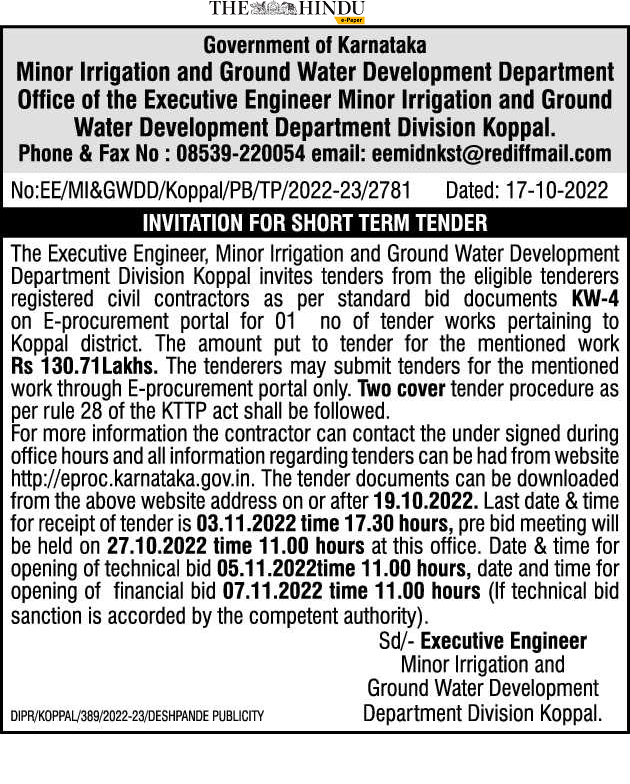 Tender for civil contractors as per standard bid documents KW-4 on E-procurement portal