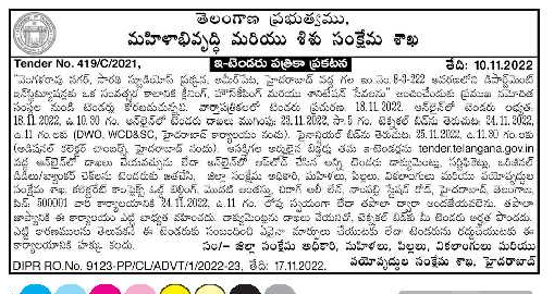 “Cleaning, Housekeeping and Sanitation Services for one year to Departmental Institutions in Premises No. 1-1-722 at Vengalarao Nagar,