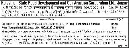 Tender for Colection of 151 lax-romCommerciala-dFivate vices) “Dug Chaumehale-Silamau Road” for a pariod of 302 Days.