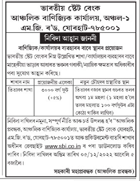 Tender for commercial / office use State Bank of India invites opportunities from the owner/holder of jurisdiction of the building