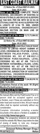 KG 90 UTS RAILS LAID ON 52 KG SLEEPERS @ 1540 NOS. PER KM. WITH SH 60 KG 90 UTS RAILS AND PSC 60 KG SLEEPERS FOR A LENGTH OF 9.184 TR. KMS. UNDER SENIOR DIVISIONAL ENGINEER/EAST/ WALTAIR SECTION ON MAIN LINE OF WALTAIR DIVISION.