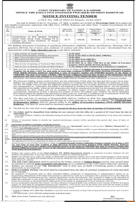 Tender for Completion Construction of B.O Quarter including Septic Tank, Sump Tank. Soakage Pit at 26.77