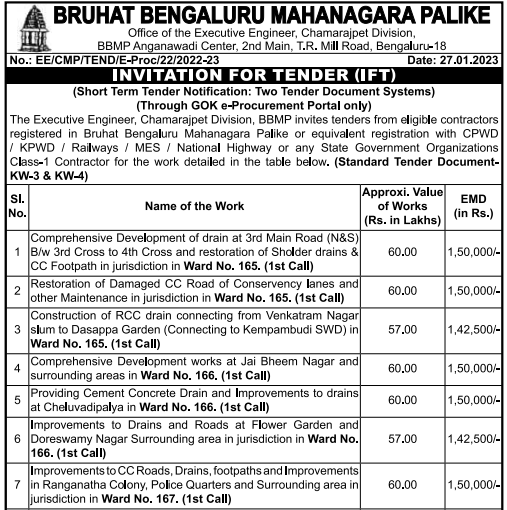 tender for Comprehensive Development works at Jai Bheem Nagar and surrounding areas in Ward No. 166.