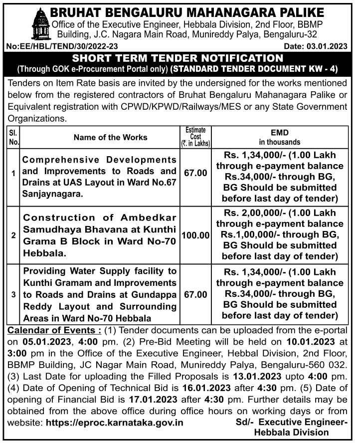 Comprehensive Developments and Improvements to Roads and Drains at UAS Layout in Ward No.67 Sanjaynagara.