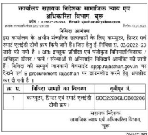 Tender for Computer, printer and smart LED TV are to be purchased for the hostels operated under this office. For which e-tender no. 03/2022-23 has been issued.