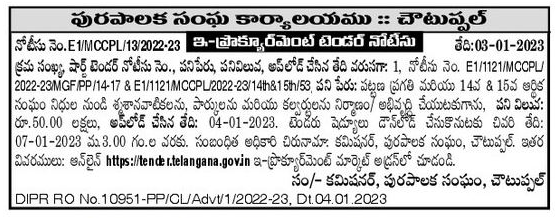 Tender for construct/develop cemeteries, parks and culverts from Urban Development and 14th & 15th Finance Commission funds,