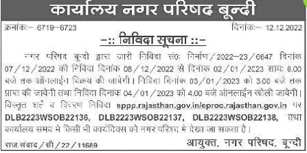 Tender for Construction / 2022-23/6647 dated 07/12/2022 issued by Municipal Council Boondon will be sold
