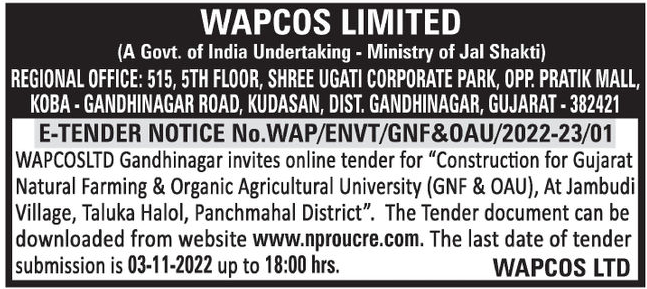“Construction for Gujarat Natural Farming & Organic Agricultural University (GNF & OAU), At Jambudi Village, Taluka Halol, Panchmahal District”.