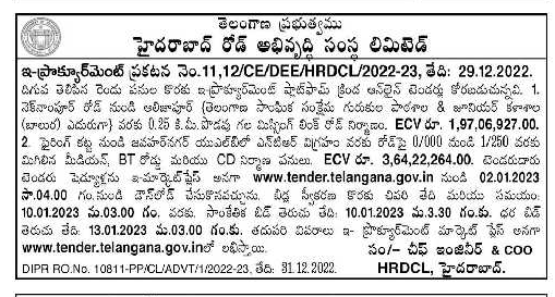 Tender for Construction of 0.25 km long Missing Link Road from Neknampur Road to Alijapur (Opposite Telangana Social Welfare Gurukula School & Junior College (Boys)
