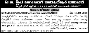Tender for construction of 102 cars along with infrastructure works at Velagapally Telavul in Devipatnam Mandal, Rampachodavaram Division, ABRI District, Andhra Pradesh